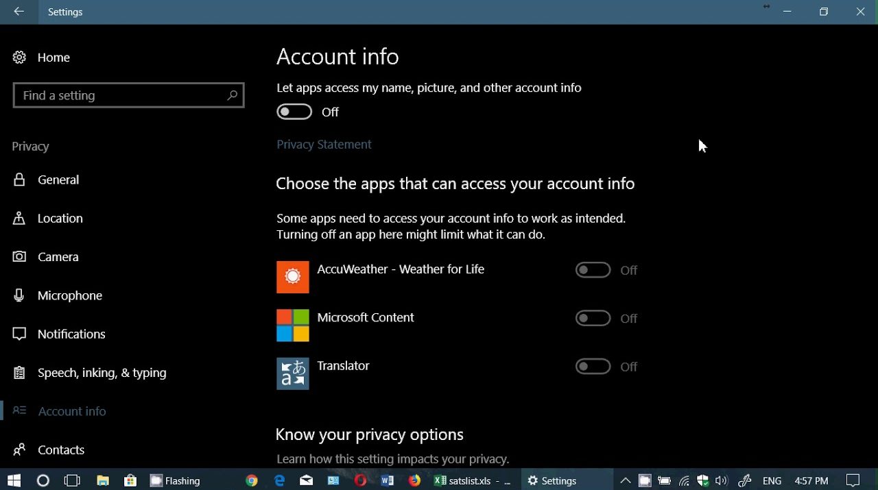 One the Privateness settings I at all times preserve off is the Account data settings, I don’t need apps to get my private particulars.